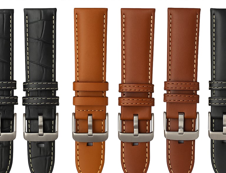 Explore our luxury watch strap collection, crafted from premium materials for unmatched style and versatility. Mix and match textures and colors to create a look that's uniquely yours. Elevate your timepiece and redefine elegance with every choice.